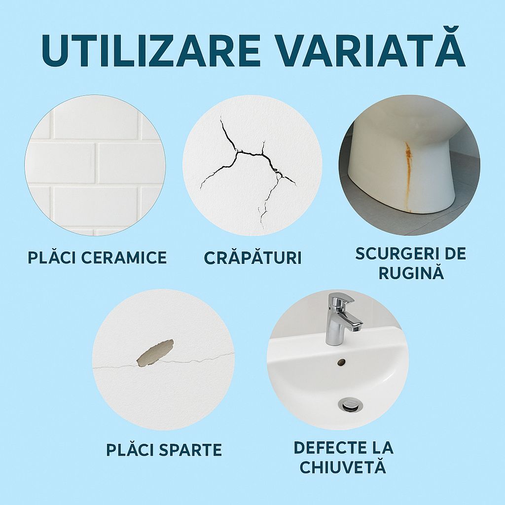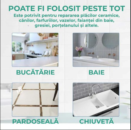 ✨Fie că vrei să scapi de crăpăturile din gresie sau de colțurile ciobite de la chiuvetă, kitul îți oferă un rezultat curat și vizibil✨. Cu un efect durabil, suprafețele tale ceramice vor arăta ca noi, fără să chemi pe nimeni și fără costuri mari.